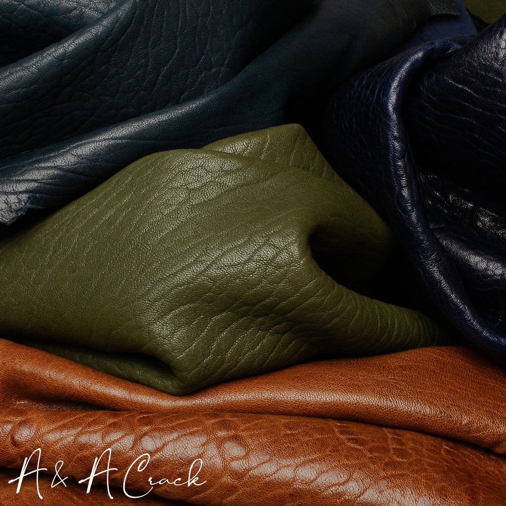 - Aniline, Semi Bright, Shrunken Grain, Soft Handle, Veg Tan, Washed