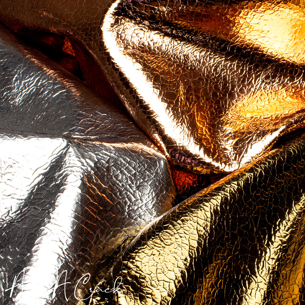 Foil On Deer has a metallic transfer which has been embossed on to gorgeously soft deer hides. Deerskin stands apart from other high quality leathers simply because it's touch, density and sponge-like softness. Great for bags.