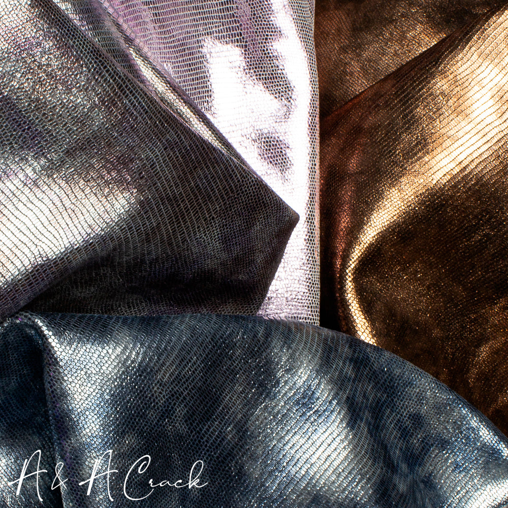 Jazz is a soft handle metallic leather with a criss-cross print. Great for those soft handbags and footwear.