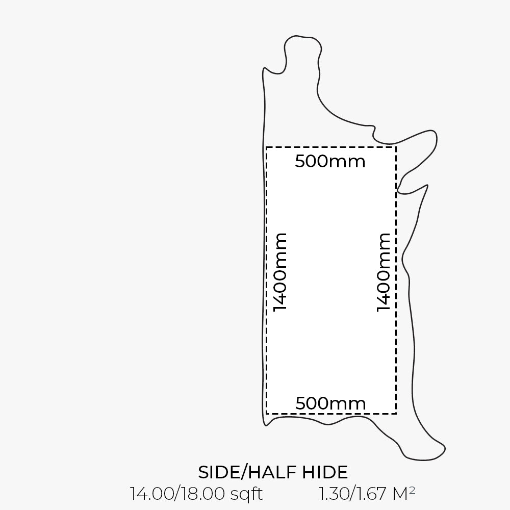 The above example indicates that skins/hides from this particular article will generally have a substance from anywhere between 1.3/1.5mm. This is a guide, and on occasion may fall slightly outside of this range.