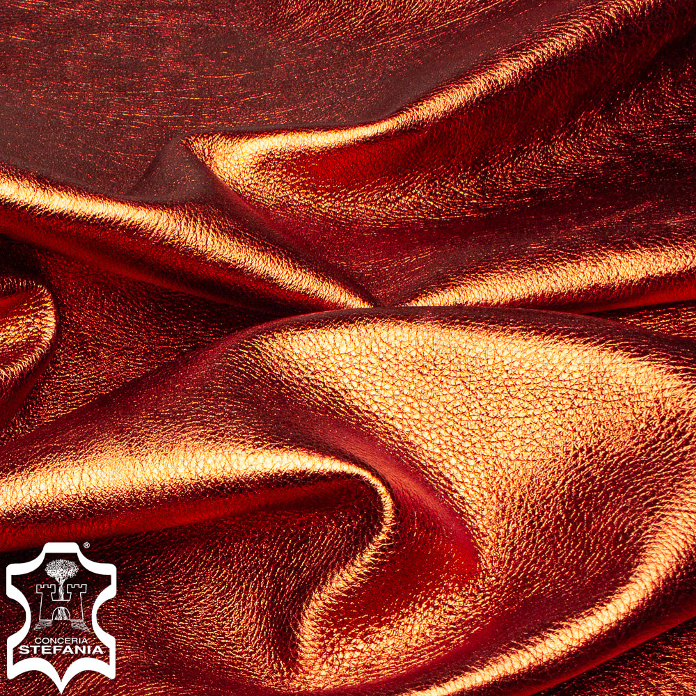 Stefania Metallic Babycalf is a soft leather with a metallic finish, produced on lightweight babycalf skins. These hides are perfect for accessories and other small leathergoods.